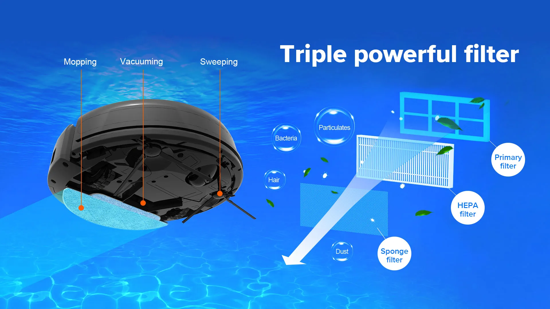 OPTIMIZED SUCTION. CATCHES ALL TYPES OF DIRT