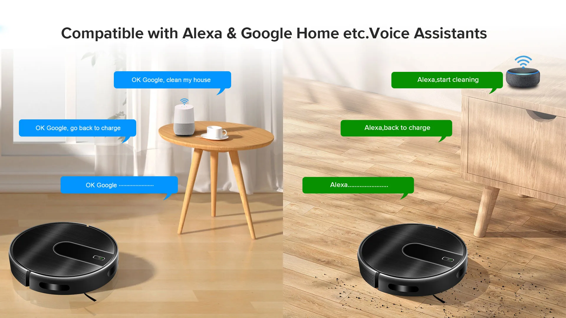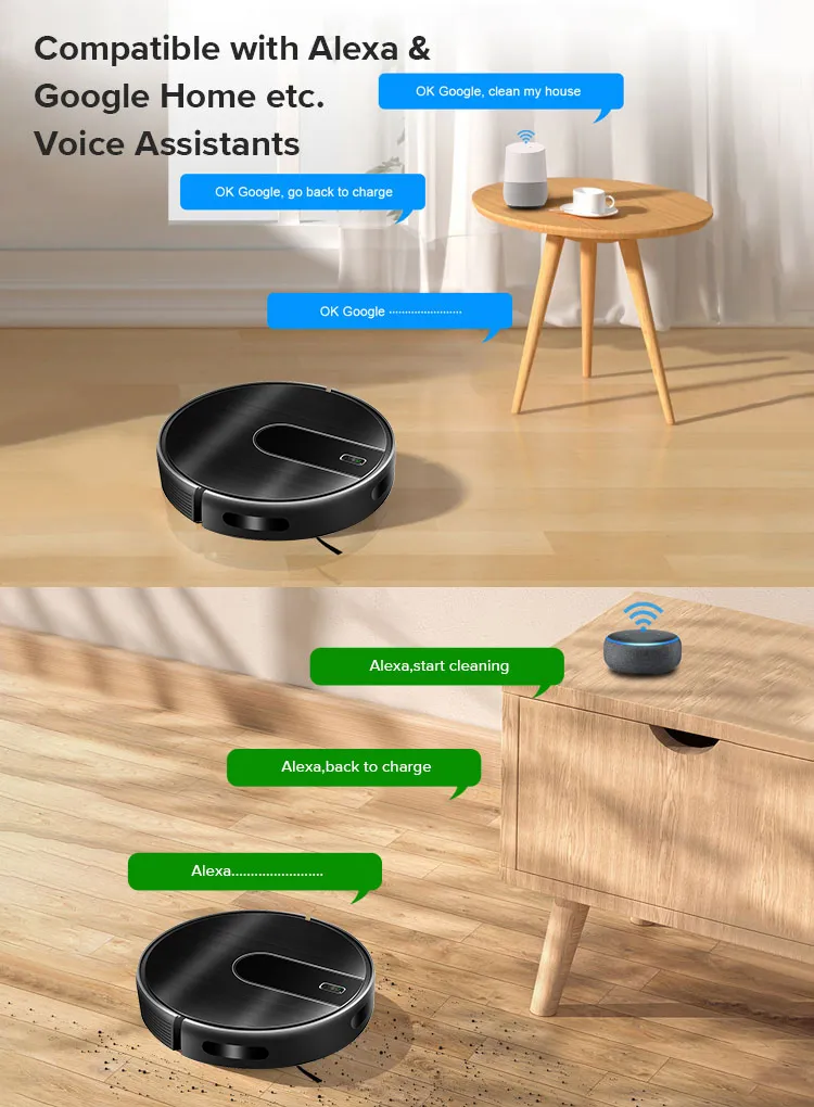 It can be connected to the internet and controlled from there via an app on your mobile phone. Using the app you can, for example, start cleaning, set a cleaning period, switch between different cleaning programs and see how much battery is left. In addition, It can also be controlled with Alexa or Google Home.